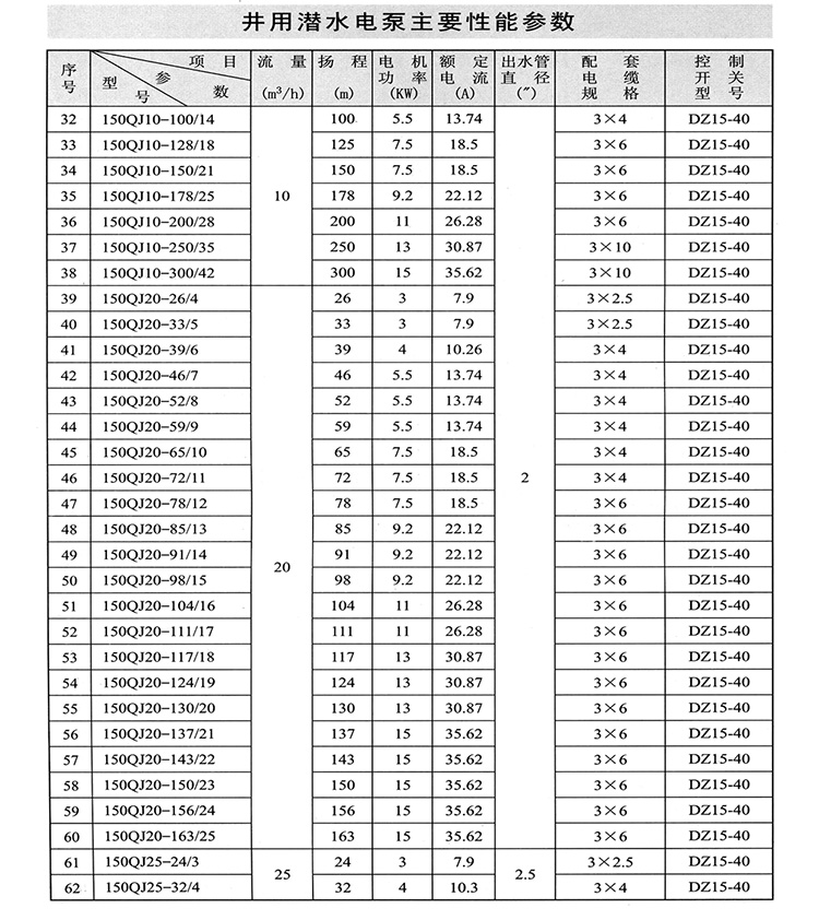 ZAQJ長軸深井泵、深井長軸泵性能參數