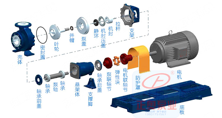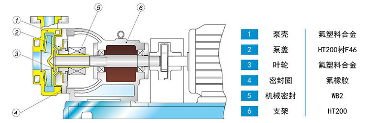 IHF為單級單吸式氟塑料合金化工離心泵,該泵是按照國際標(biāo)準(zhǔn)并結(jié)合非金屬泵的加工工藝設(shè)計生產(chǎn)。泵體采用金屬外殼內(nèi)襯聚全氟乙丙烯(F46),泵蓋、葉輪和軸套均用金屬嵌件外包氟塑料整體燒結(jié)壓制成型,軸封采用四氟填充材料,進(jìn)出口均采用鑄鋼體加固。