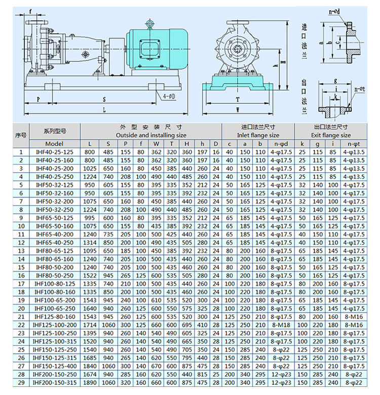 IHF型泵為單級單吸式氟塑料合金化工泵,是按國標(biāo)設(shè)計并結(jié)合非金屬泵的加工工藝設(shè)計生產(chǎn)的。該泵具有耐腐、耐磨、耐高溫、不老化、使用溫度寬,輸送介質(zhì)溫度為-85C~200。