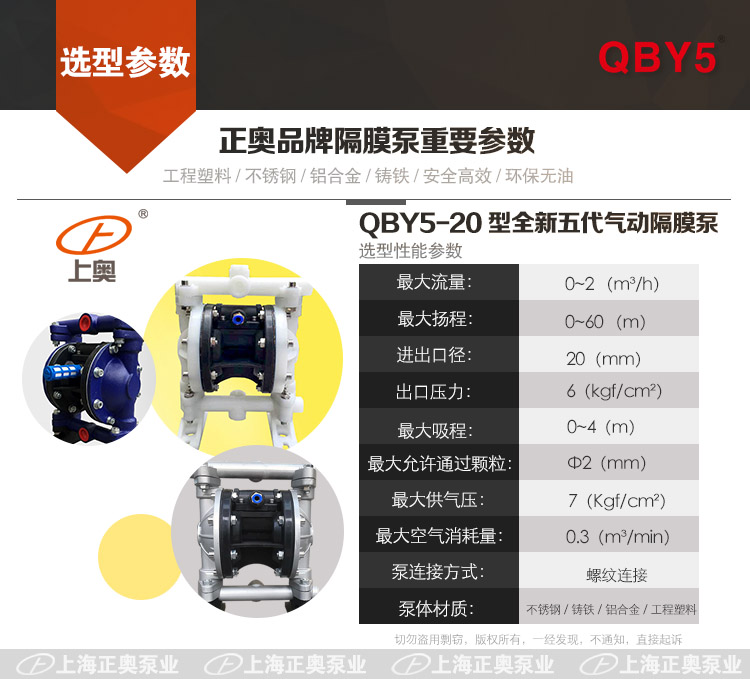 產(chǎn)品名稱:QBY5-20型氣動(dòng)隔膜泵【全新五代氣動(dòng)隔膜泵】 如用戶有特殊要求,聯(lián)系電話021-66525777,以方便用戶選型,正確使用上海正奧品牌隔膜泵 |